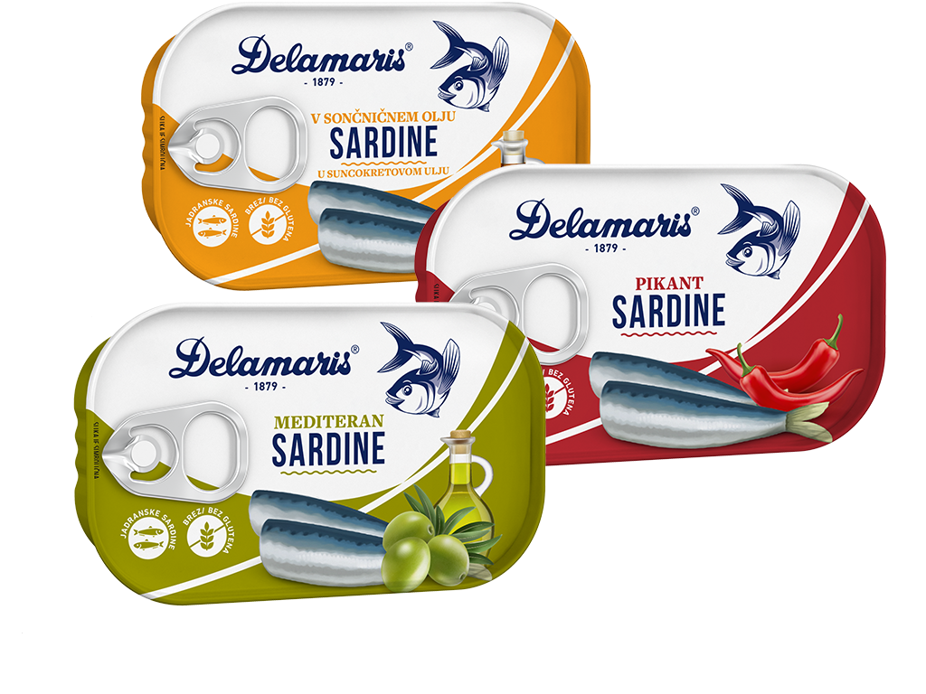 Među ribama bogatim omega 3 masnim kiselinama posebno se ističe atlantska skuša (Scomber scombrus), ona je glavni sastojak proizvoda Delamaris. Po obliku i ukusu razlikuje se od svoje srodne vrste (Scomber japonicus), odnosno plavice (lokarde) koja se na svetskom tržištu upotrebljava kao zamena za skušu. Skuša u našim proizvodima potiče iz severnog Atlantika, ribolovnog područja FAO 27, koje se smatra jednim od najčišćih mora. U proizvodima je prirodno prisutan visok sadržaj omega 3 masnih kiselina. Fileti skuše Delamaris su bez konzervansa i drugih aditiva. Proizvodi ne sadrže gluten. Mogu se jesti samostalno, ali izvrsne su i u raznim salatama, jelima sa testeninom i drugim prilozima za posebne gastronomske doživljaje.