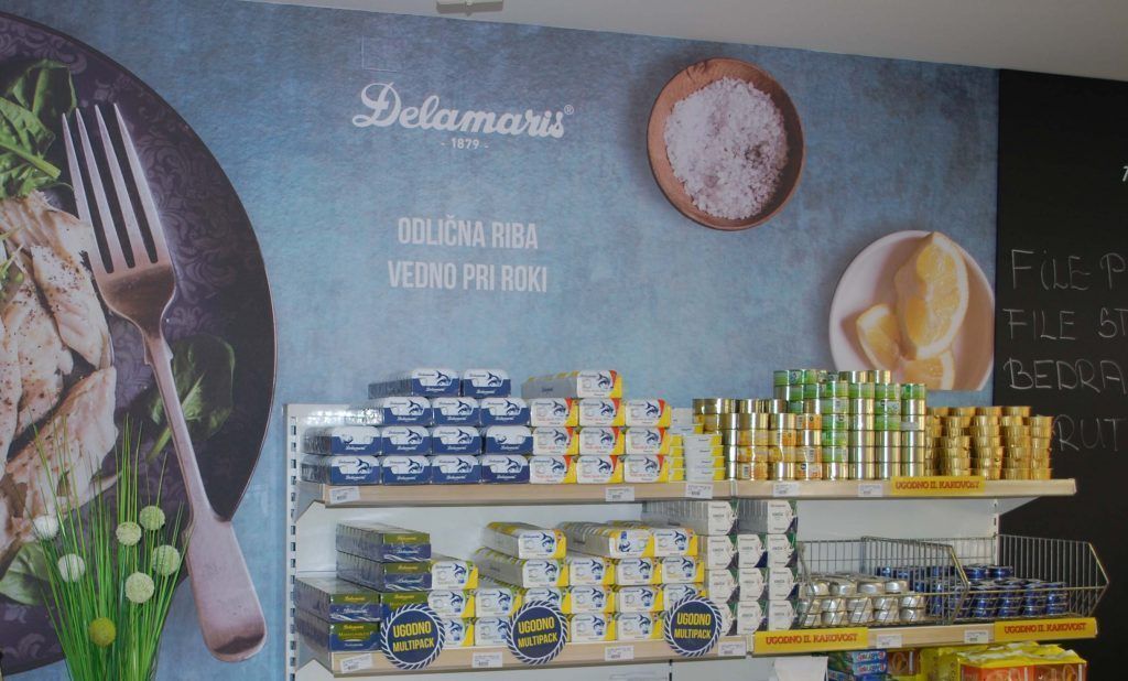 Prodaja ribjih izdelkov Delamaris ter izbranega asortimana Pivke perutninarstva.