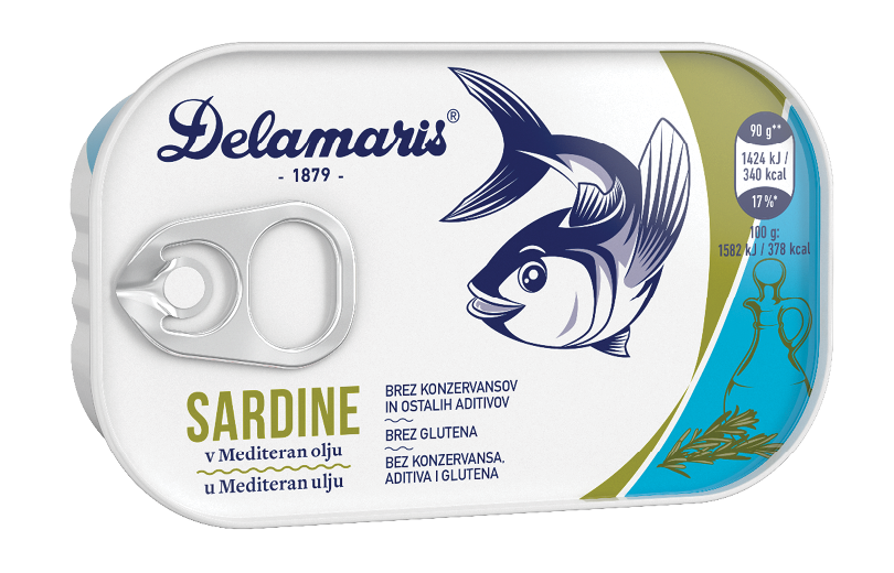 Sardine se prave od plave ribe sardine latinskog naziva Sardina Pilchardus. Ime je dobila po italijanskom ostrvu Sardinija, gde je nekada bila u izobilju. Danas živi u jatima u Jadranskom i Sredozemnom moru i u Atlantiku. U proizvodima Delamaris koristimo jadranske sardine, koje se ističu ukusom i kvalitetom u poređenju sa drugim sardinama..