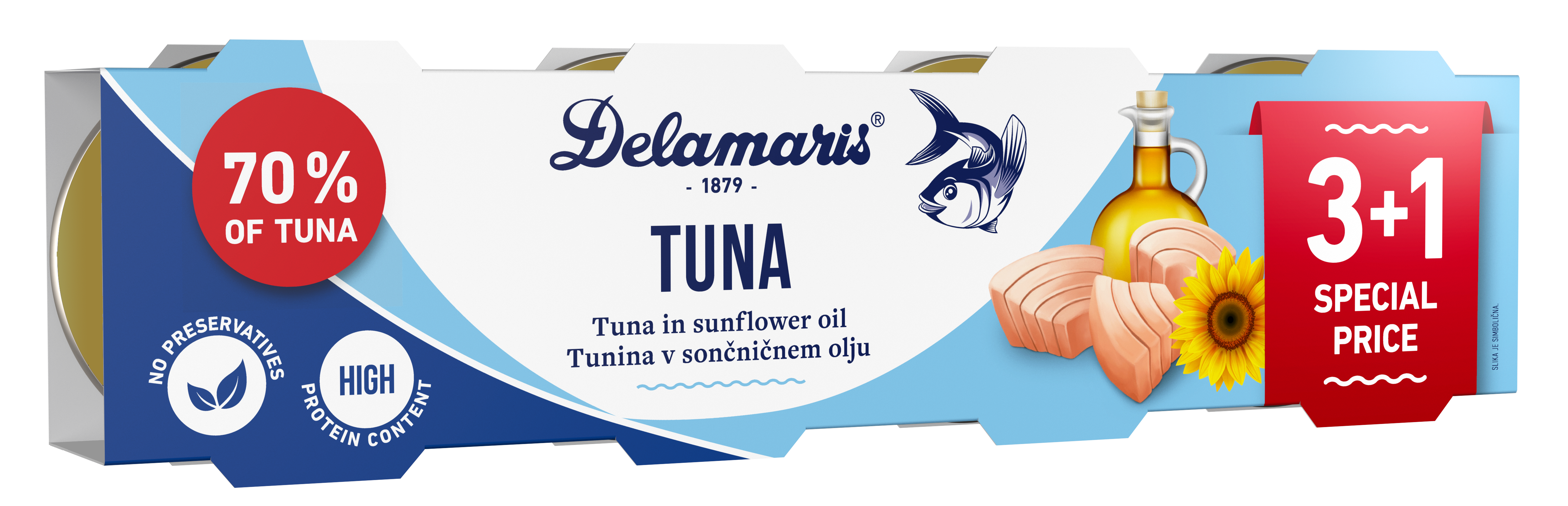 Sastojci: tuna (Katsuwonus pelamis) 70 % (56 g), suncokretovo ulje, kuhinjska so.